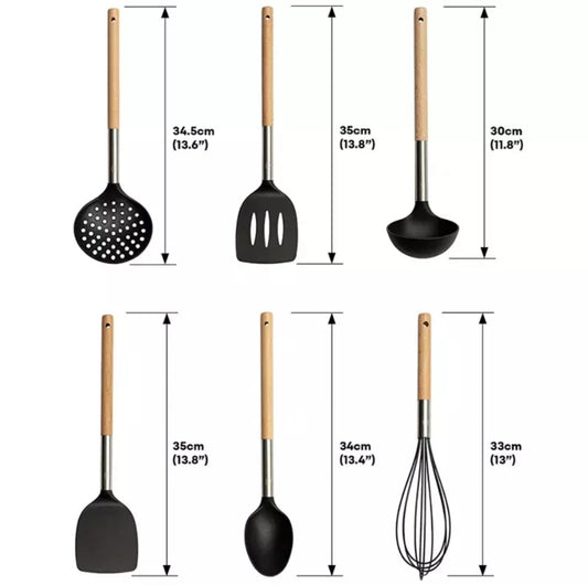 MasterChef 525512 3-Piece Spatula Set, Silicone Head, Wooden Handles, 25cm